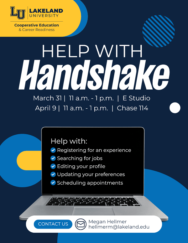 Want to learn more about our career services platform, Handshake? Stop by one of our fall Handshake Help Sessions. Megan Hellmer, Director of Cooperative Education & Career Readiness, will be available to assist you with things like using to Handshake to register for a credit-bearing experience, searching for jobs, editing your profile, updating your notification preferences and more!