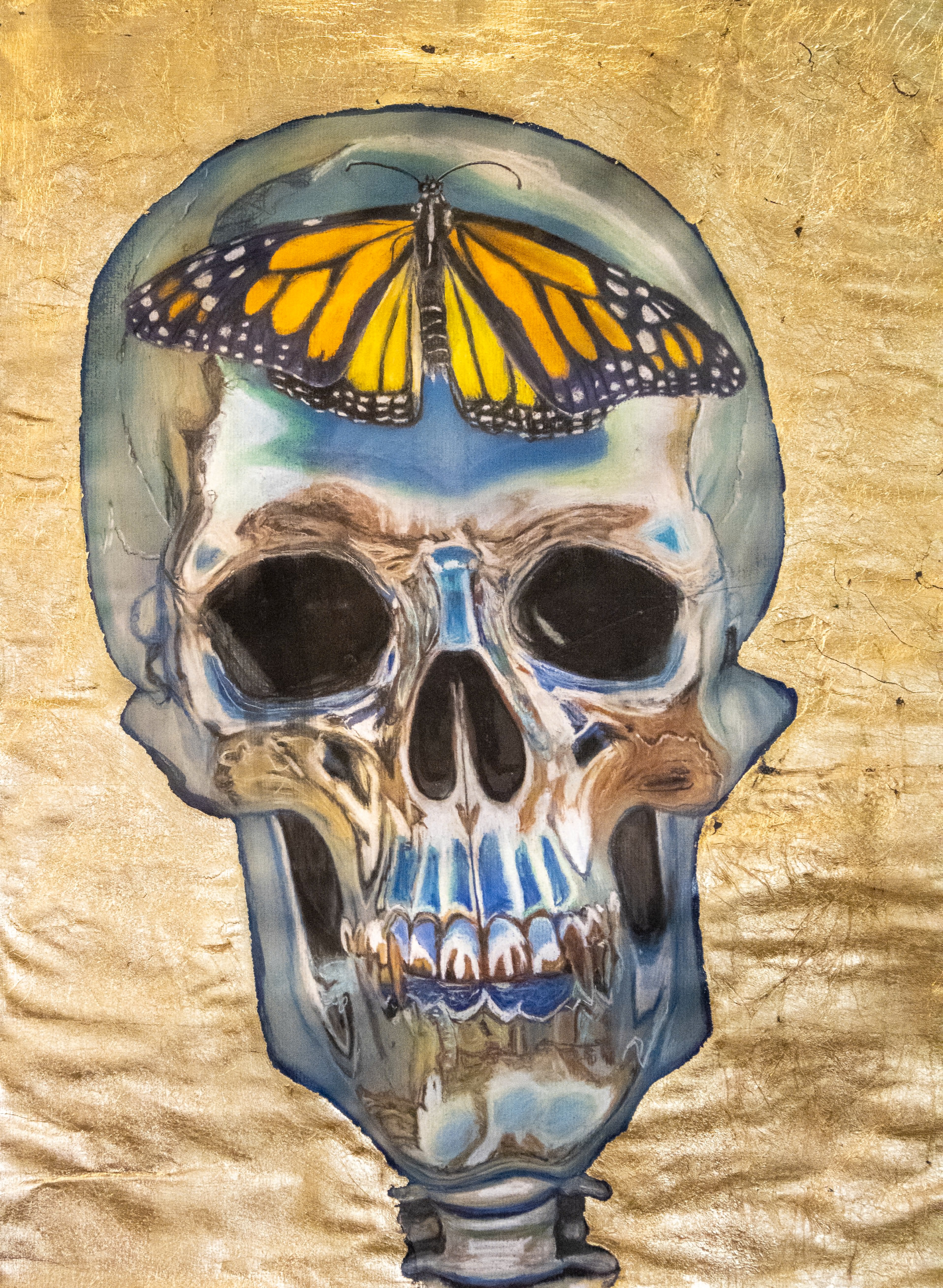 Her work explores the balance between nature, mortality and transformation, often incorporating imagery such as flowers, animals and butterflies to represent both fragility and strength.