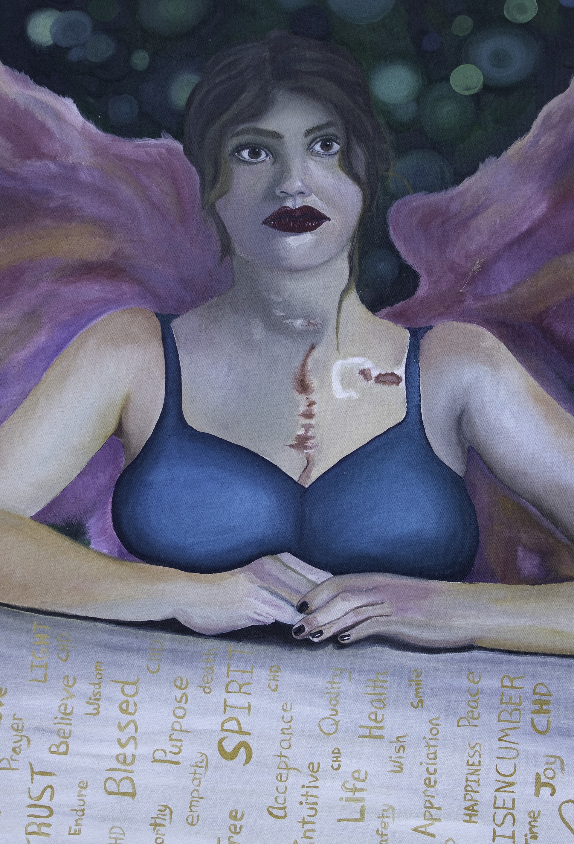 Growing up on a hobby farm, she developed a lasting love for animals and that connection has guided her creativity. She is also inspired by her congenital heart defect (CHD), a structural abnormality that has defined much of her journey.