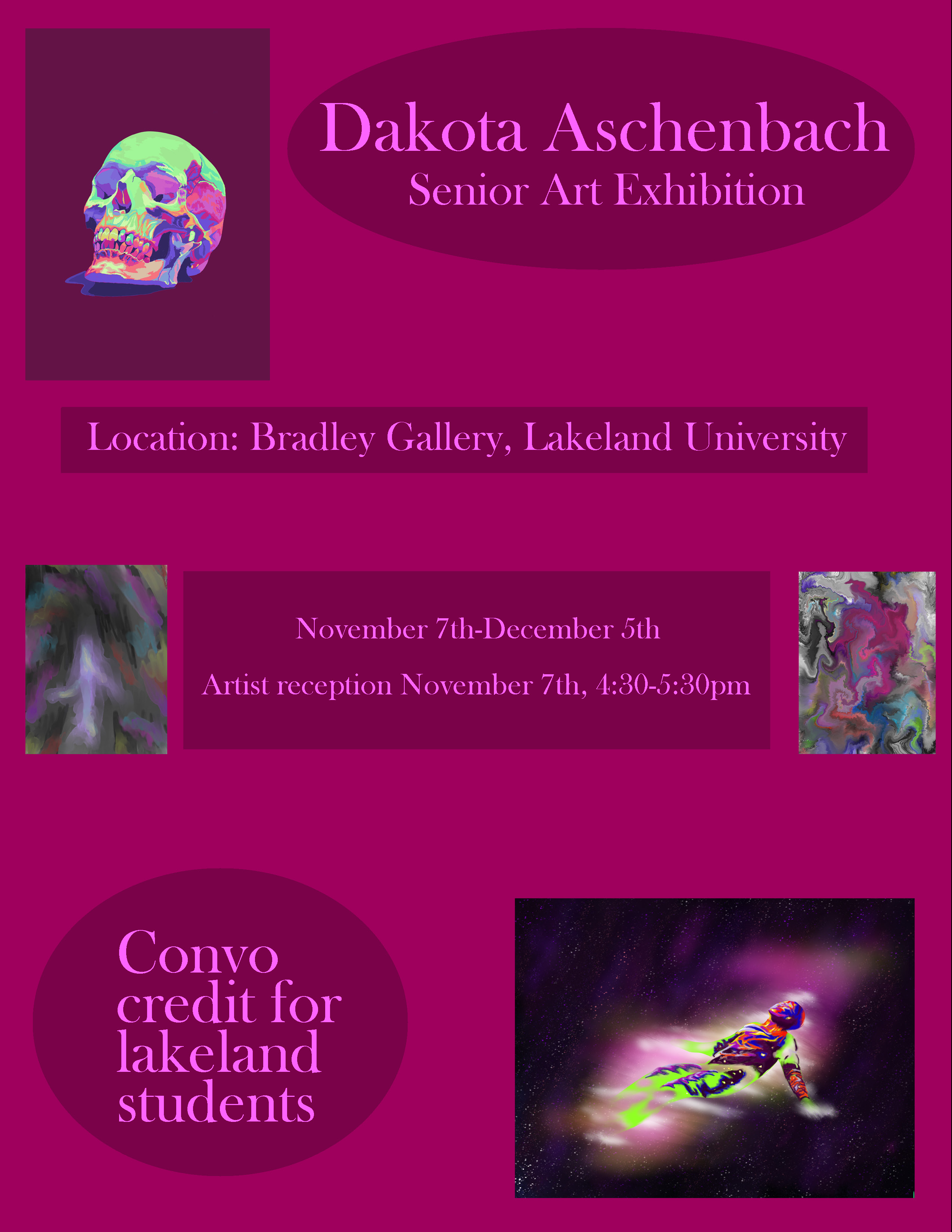 The artwork of a pair of Lakeland University seniors will be spotlighted during the next Bradley Gallery exhibition.